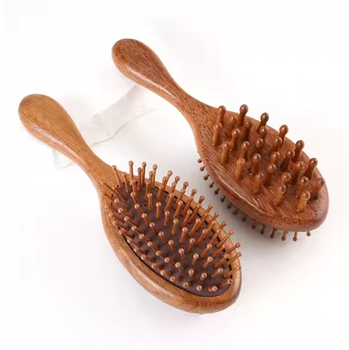 خشب الصندل تدليك الشعر بمشط ليزر بيضاوي فروة الرأس للاستخدام المنزلي والسفر يوفر فوائد العلاج بالروائح العطرية